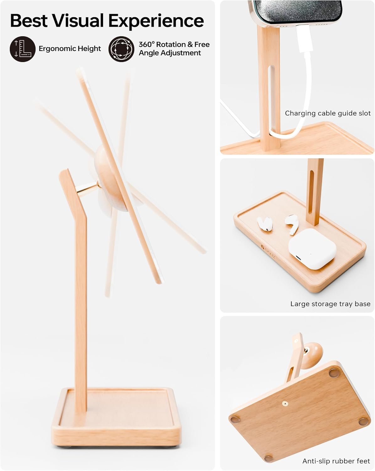 - LARGE & STABLE WOOD BASE | The weighted and widened solid wood base guarantees ultimate stability, preventing tipping. It also provides ample space to organize your desk accessories , like pens, keys, or airpods, keeping your desk tidy.