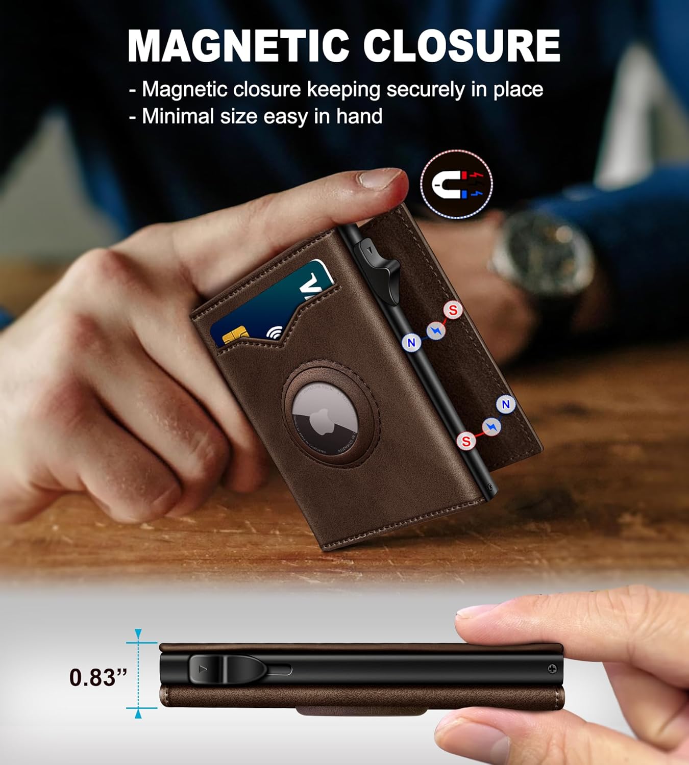 - MAGNETIC CLOSURE--This men’s minimalist wallet features a strong magnetic closure, letting you grab your essentials in an instant—while keeping cards, cash, and valuables securely held, even when you’re on the move.