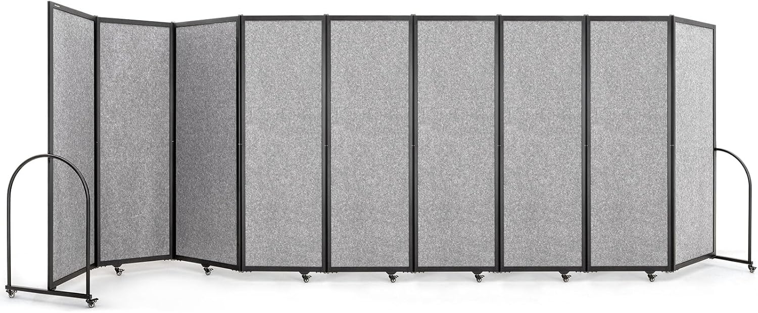 Folding Room Partition,Privacy Room Screen with Arms,Office Dividers Partition Wall,18'5"L* 6'7"H,Light Grey