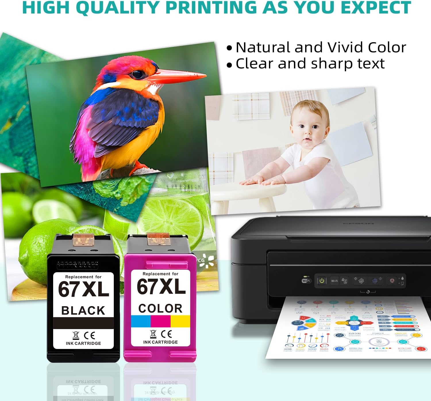 - Ink Color : 67XL 2*Black & 1 Tri-color