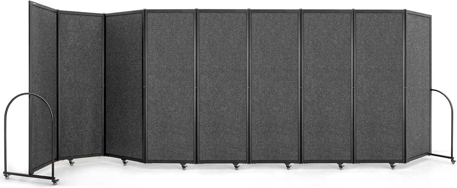 Folding Room Partition,Privacy Room Screen with Arms,Office Dividers Partition Wall,18'5"L* 6'7"H,Dark Grey