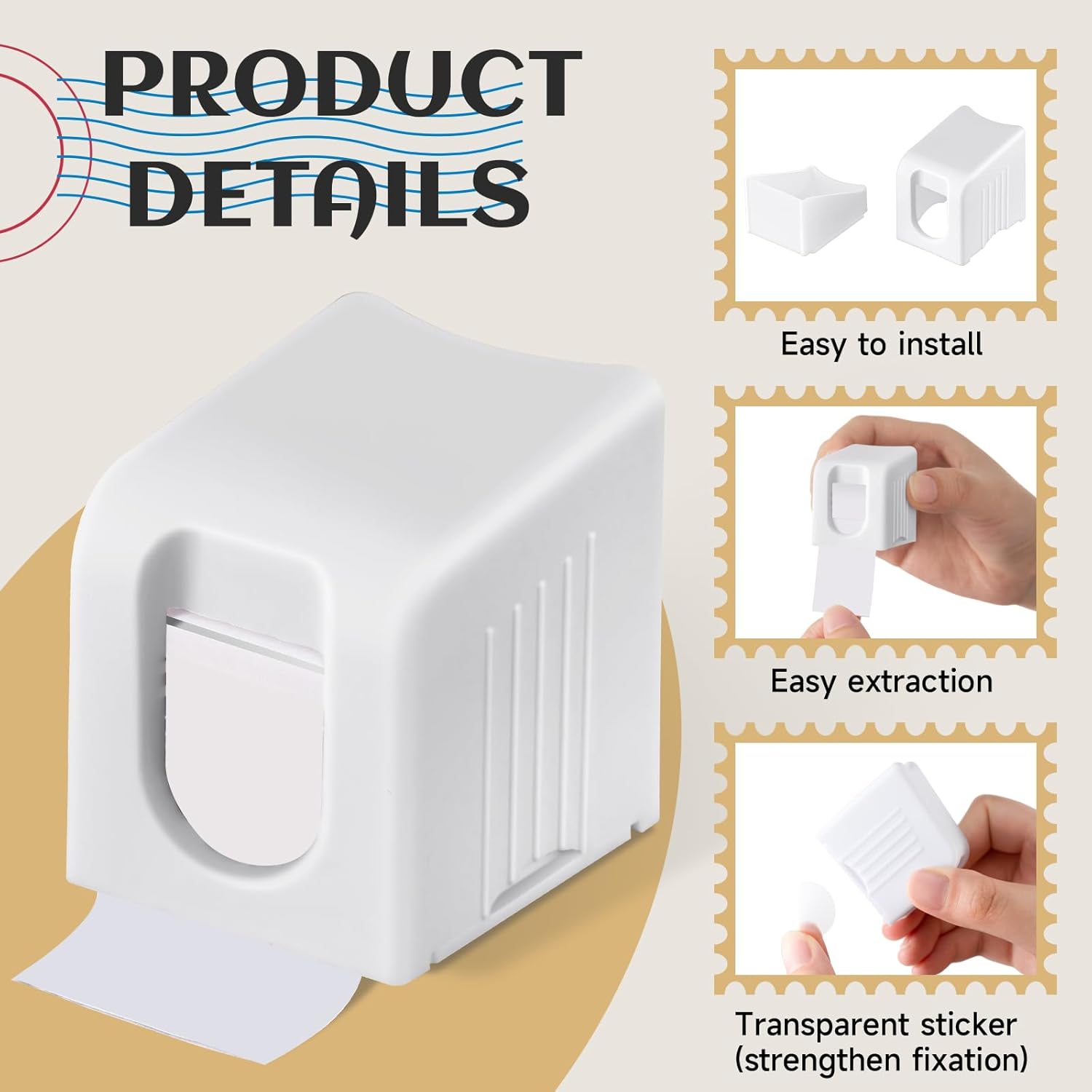 - Item Contains: 6 stamp roll dispensers in white blue and purple two of each color and a sealing sticker with 20 transparent stickers on it, fix the dispensers with stickers to prevent them from falling out, each can hold a full roll of 100 stamps, sufficient quantity will meet your different use and replacement needs, you can also share with family and friends