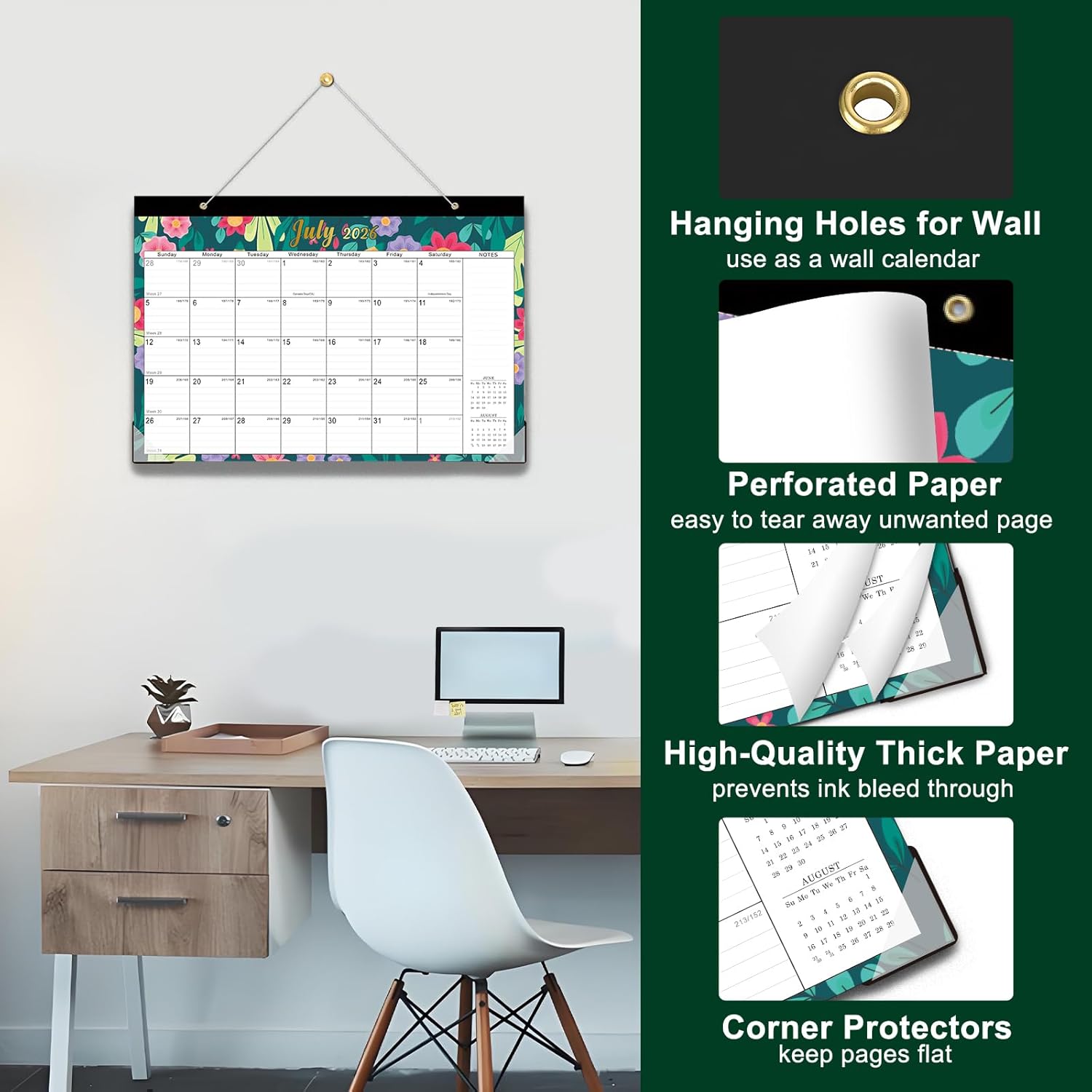 - PRACTICAL DESIGN: Our 2026-2027 desk planner uses premium 120 gsm paper to prevent ink feathering and bleed-through. The durable, high-quality paper provides a satisfying writing experience and ensures that your plans are clear and organized