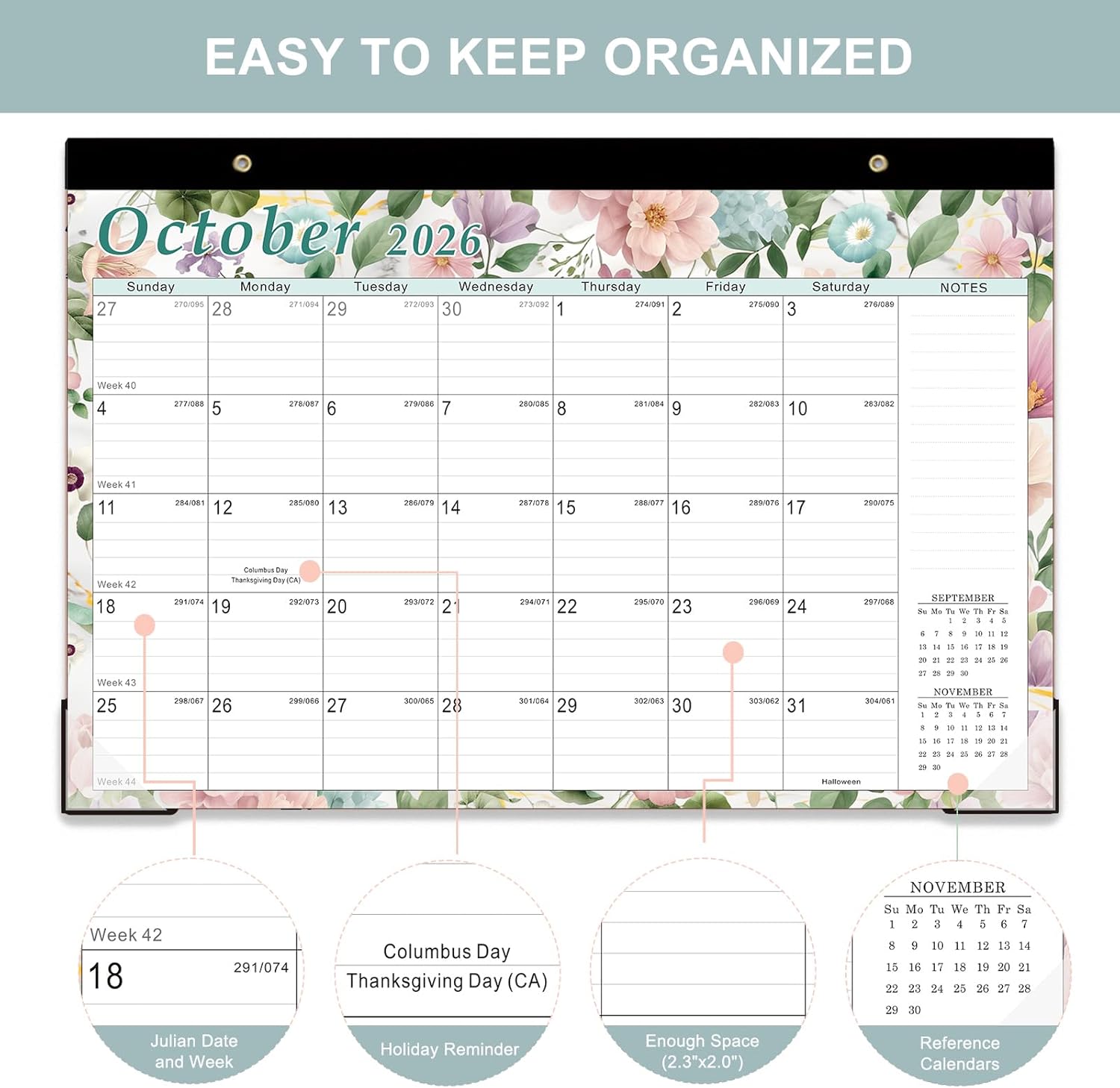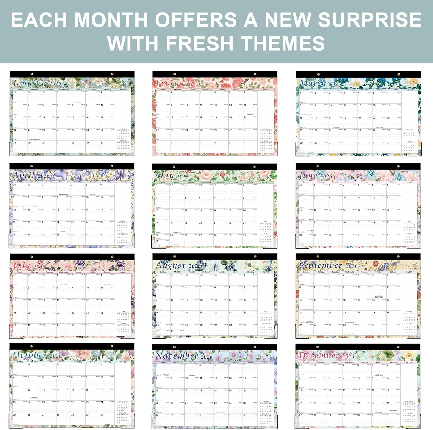 - DESK FORMAT: Standard desk calendar 2026-2027 layout with ample writing space and clear date visibility for easy daily planning and scheduling. 17 X 12 inches. Measures approximately 17 inches wide by 12 inches tall when displayed, perfect for standard desk spaces