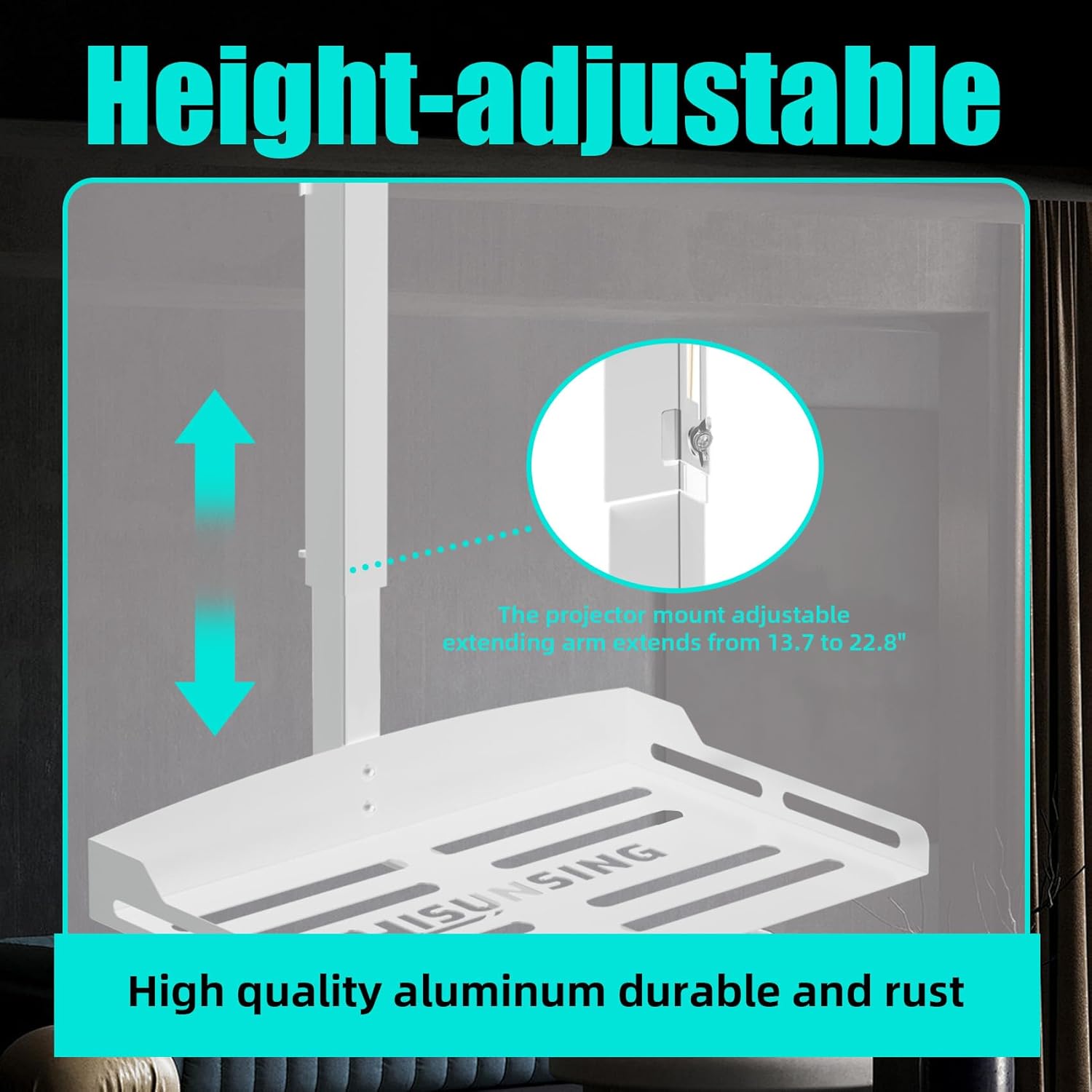 - 【Precision Height Adjustment】Effortlessly tailor your setup with a broad height range from 13.7" to 22.8". Achieve the perfect projection angle whether mounted on the ceiling, adapting easily to different screens and room configurations.