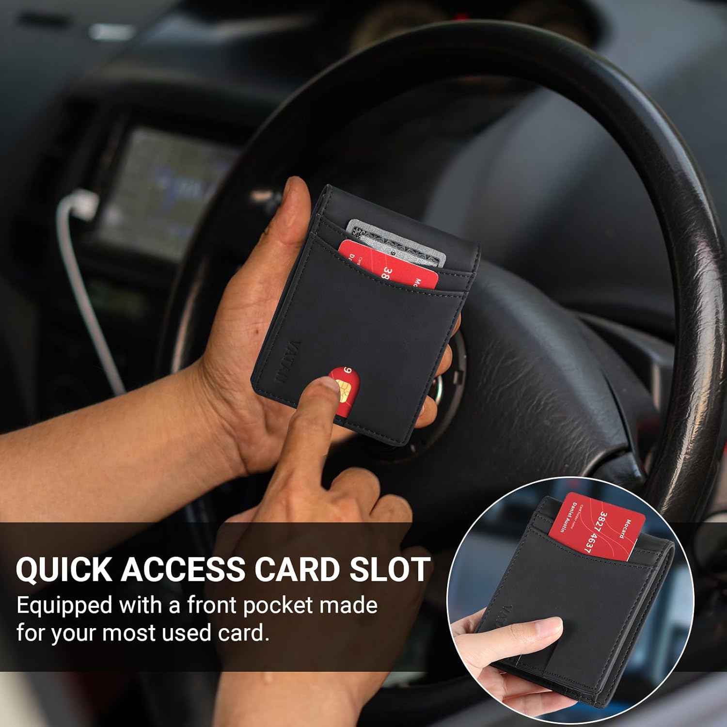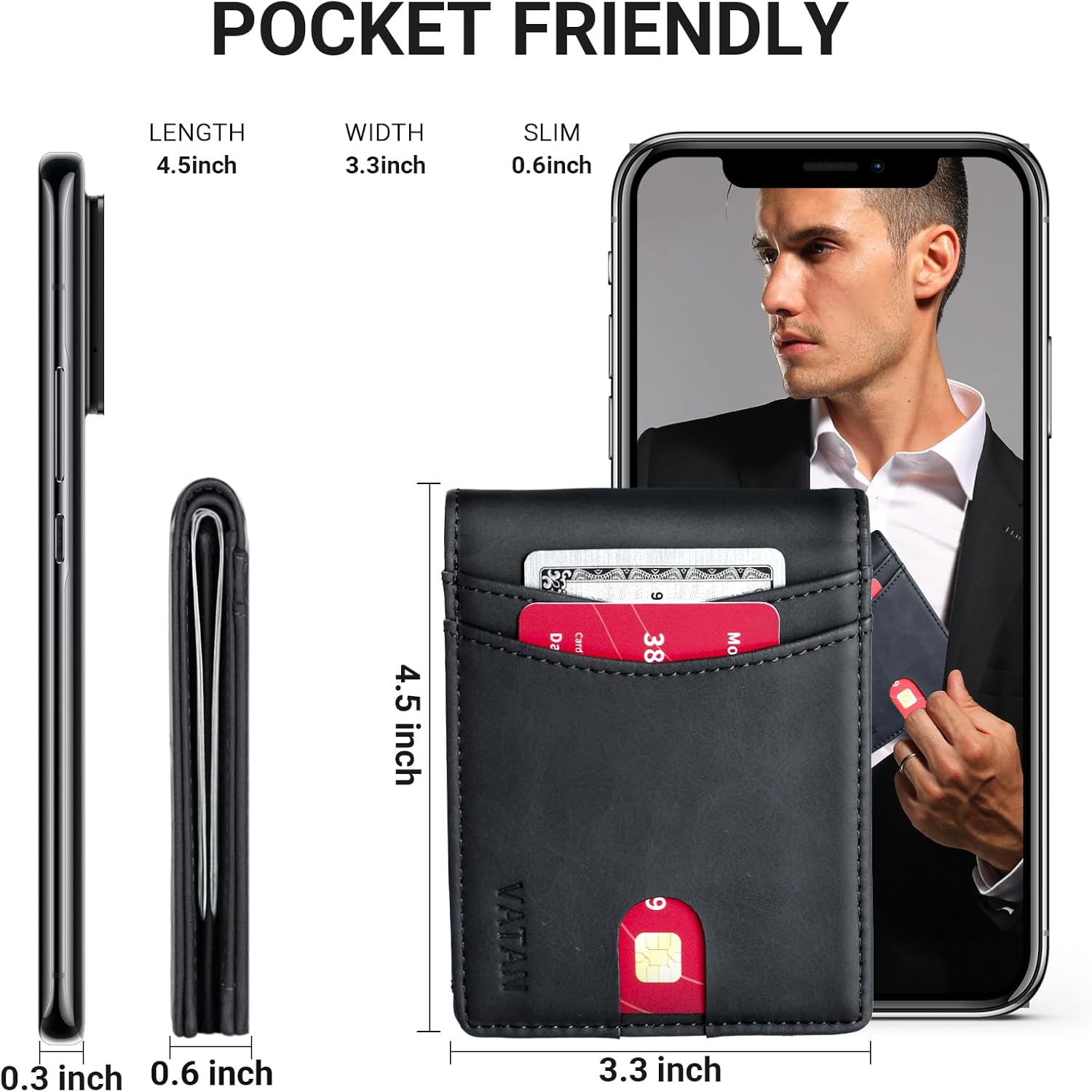 - SLIM BIFOLD WALLET: This minimalist wallet measures 4.5x3.3x0.6 inches, this bifold slim wallet for men can hold up to 15 cards. Its slim profile slips effortlessly into your pocket, making it an ideal choice for everyday carry.