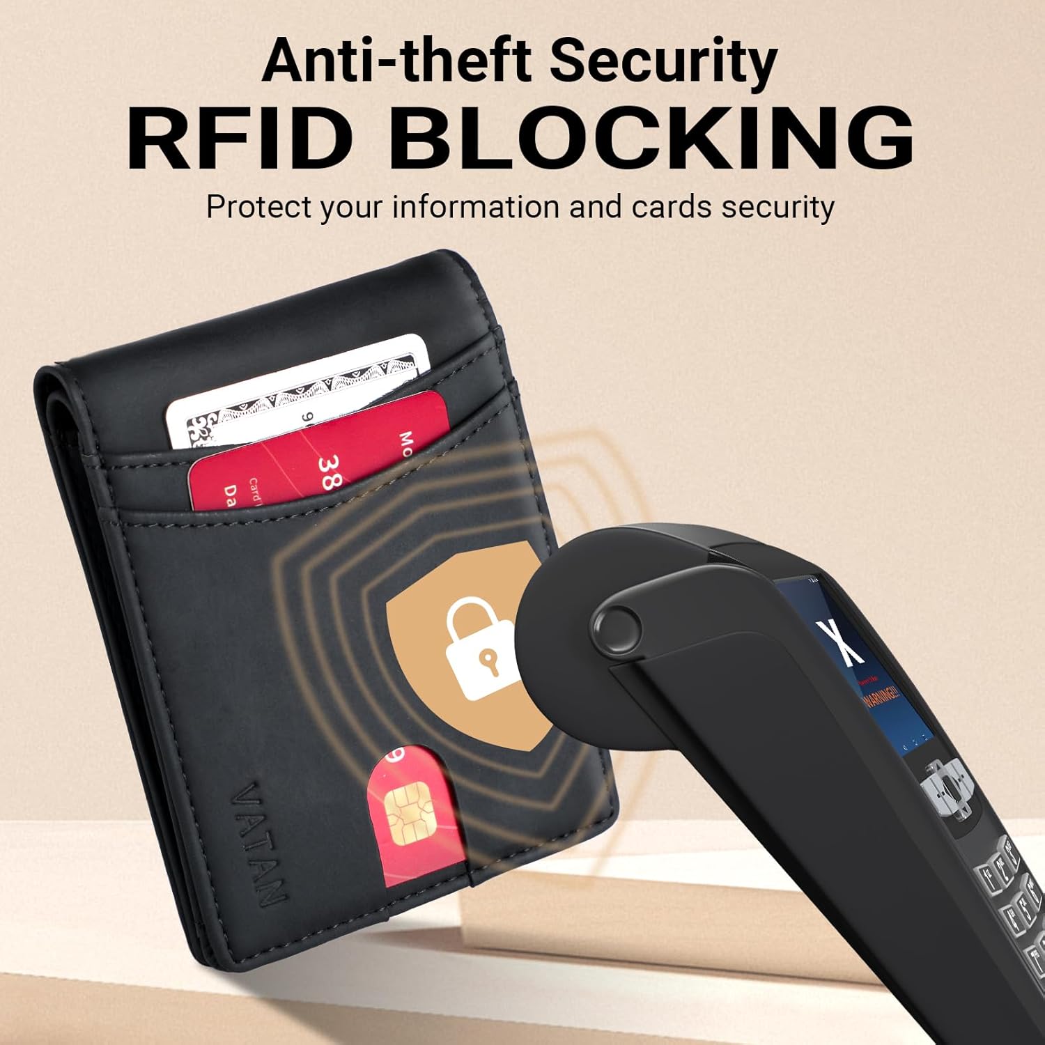 VATAN Wallet for Men, Mens Minimalist Wallet Credit Card Holder, Slim Leather Rfid 2 ID Window Large Capacity With Gift Box (Crazy Horse Black)