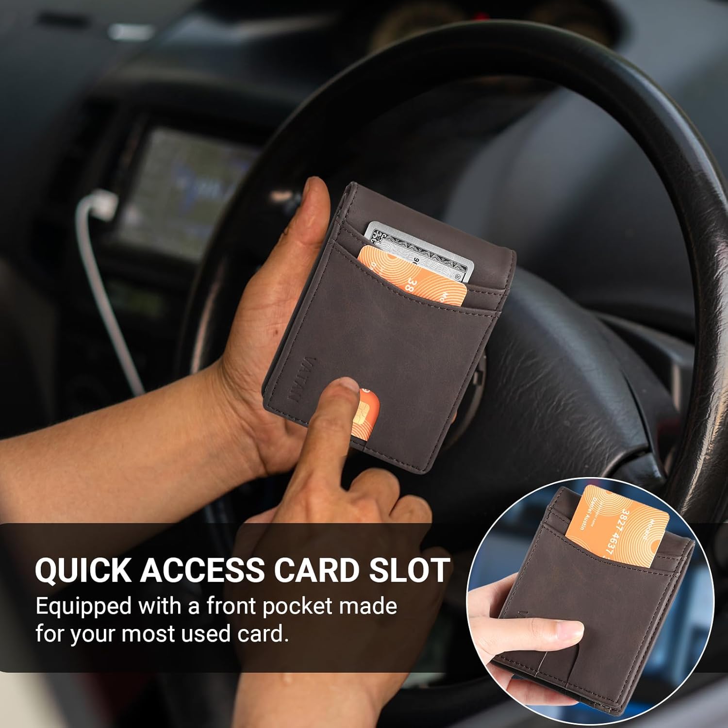 VATAN Wallet for Men, Mens Minimalist Wallet Credit Card Holder, Slim Leather Rfid 2 ID Window Large Capacity With Gift Box (Crazy Horse Deep Brown)
