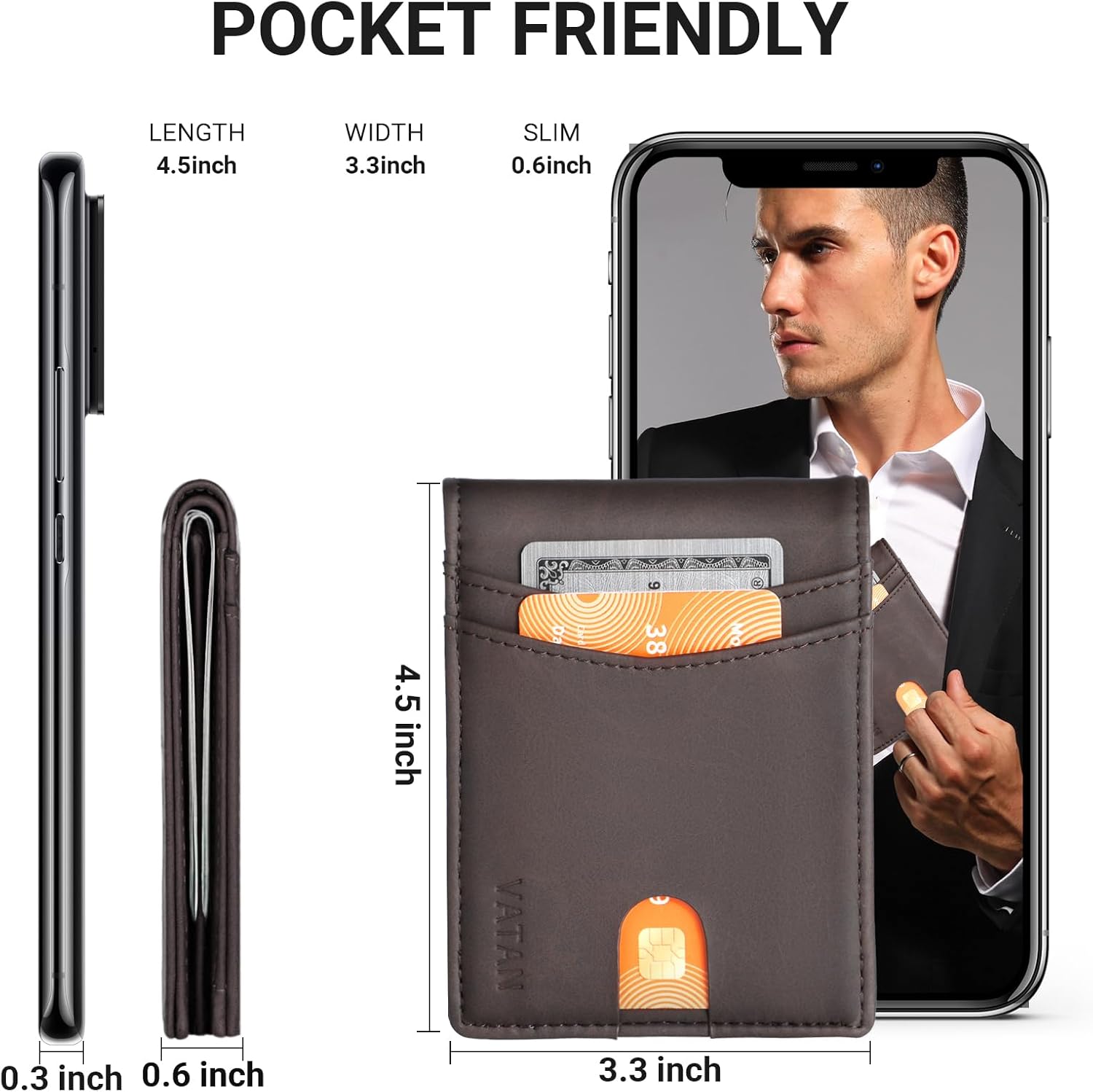 - SLIM BIFOLD WALLET: This minimalist wallet measures 4.5x3.3x0.6 inches, this bifold slim wallet for men can hold up to 15 cards. Its slim profile slips effortlessly into your pocket, making it an ideal choice for everyday carry.