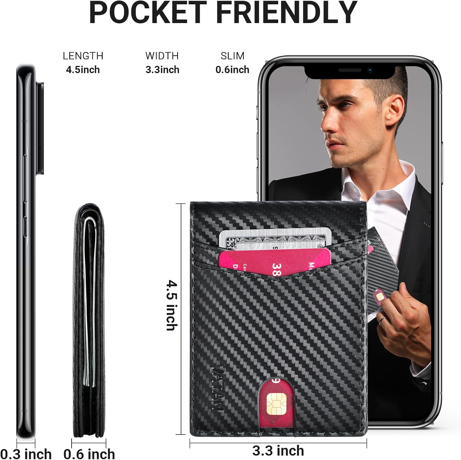 VATAN Wallet for Men, Mens Minimalist Wallet Credit Card Holder, Slim Leather Rfid 2 ID Window Large Capacity With Gift Box (Carbon Fiber Black)