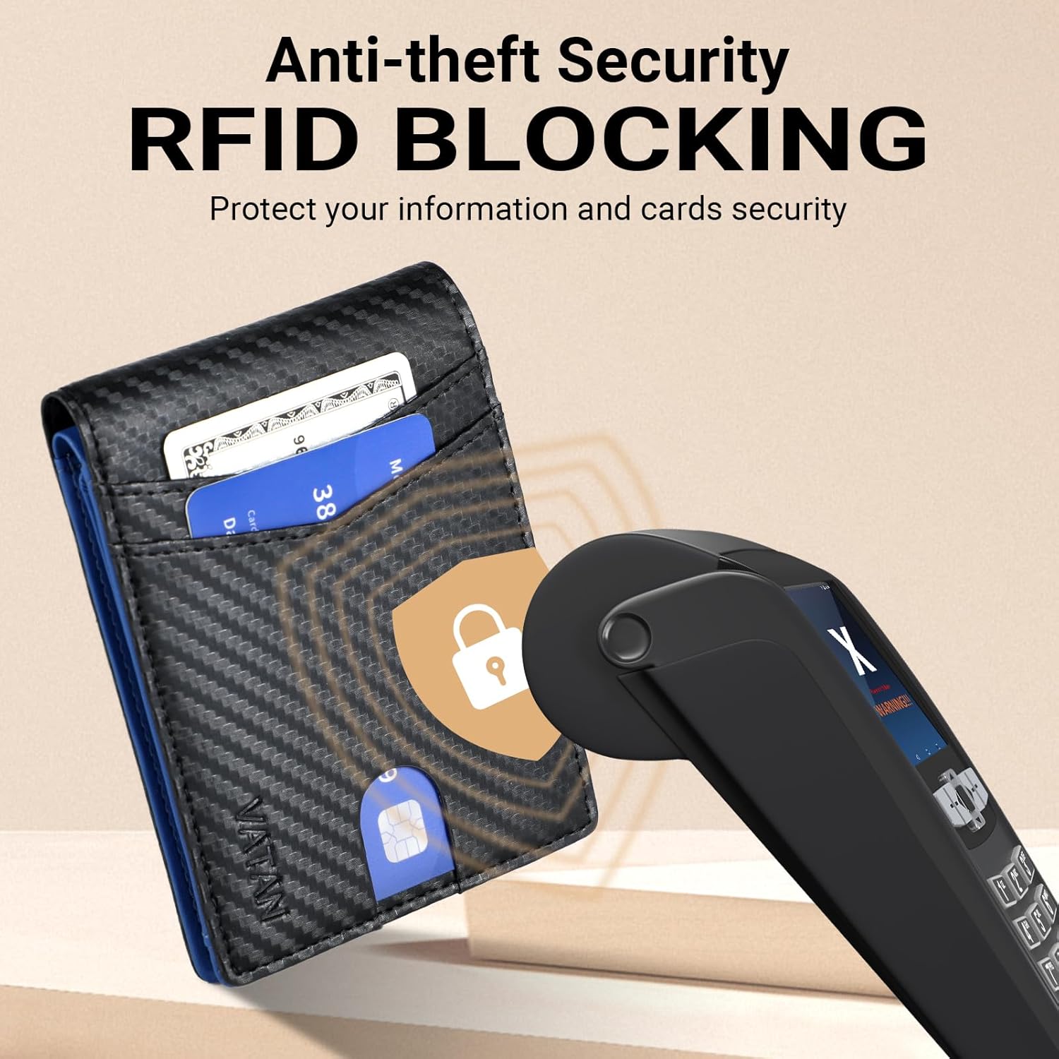 VATAN Wallet for Men, Mens Minimalist Wallet Credit Card Holder, Slim Leather Rfid 2 ID Window Large Capacity With Gift Box (Carbon Black and Blue)