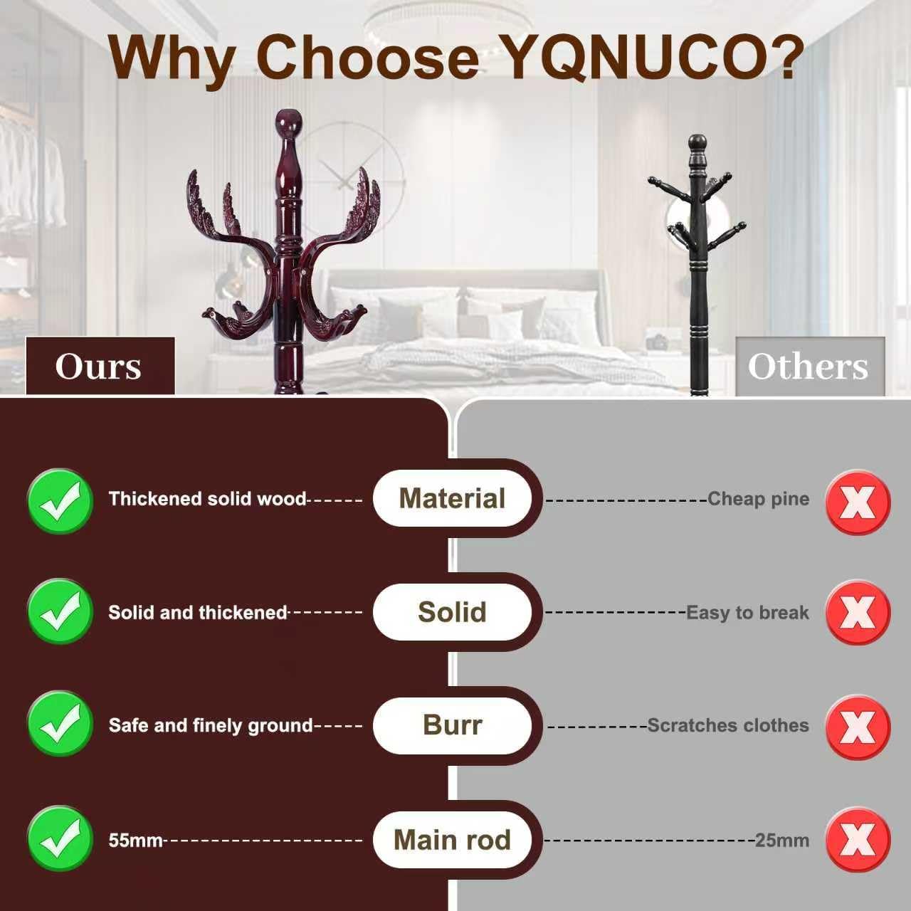 - AAA LEVEL BIRCH WOODEN MATERIAL: This coat rack is crafted from high quality solid birch wood, ensuring durability and a sturdy structure capable of holding your clothes and items without wobbling. The freestanding coat rack’s double-thickened, round base offers excellent stability. It’s a reliable choice that brings both steadiness and elegance to your home!