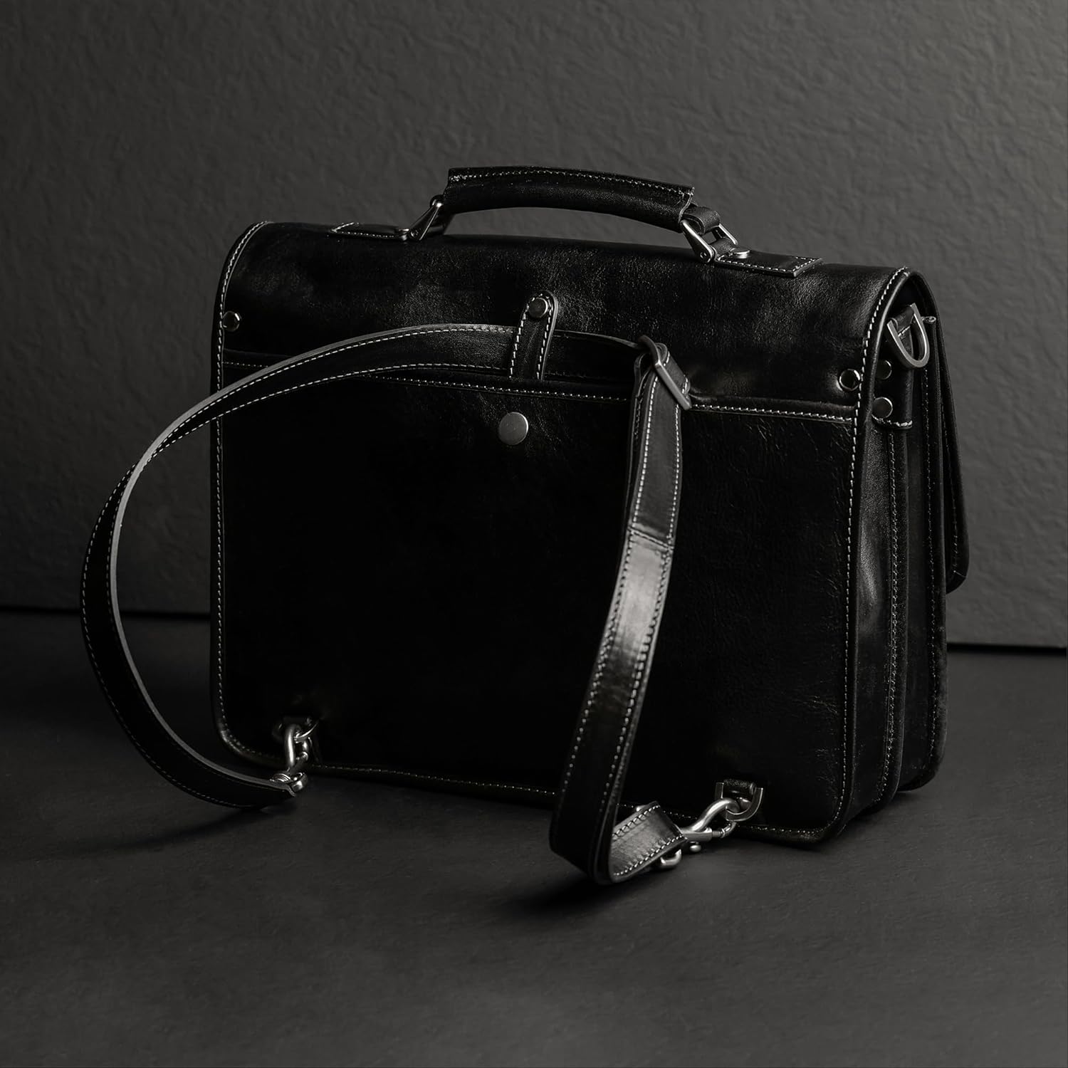 Time Resistance Leather Briefcase – Italian Handmade Leather Laptop Bag – Briefcase Convertible into Backpack