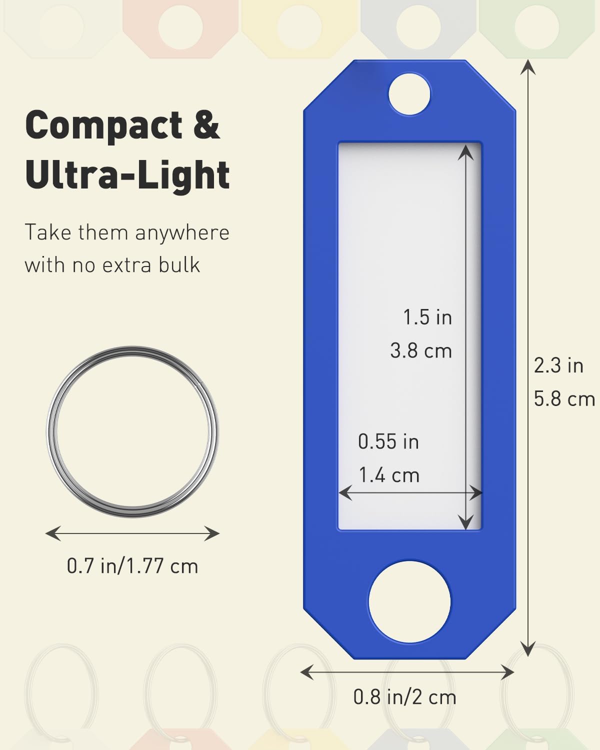 - Easy to Carry: Measuring just 2.3" L x 0.8" W and weighing only 0.09 oz, these key labels attach easily to your keychain, luggage, or other belongings with the split rings. Ultra-light design lets you take them anywhere without extra bulk