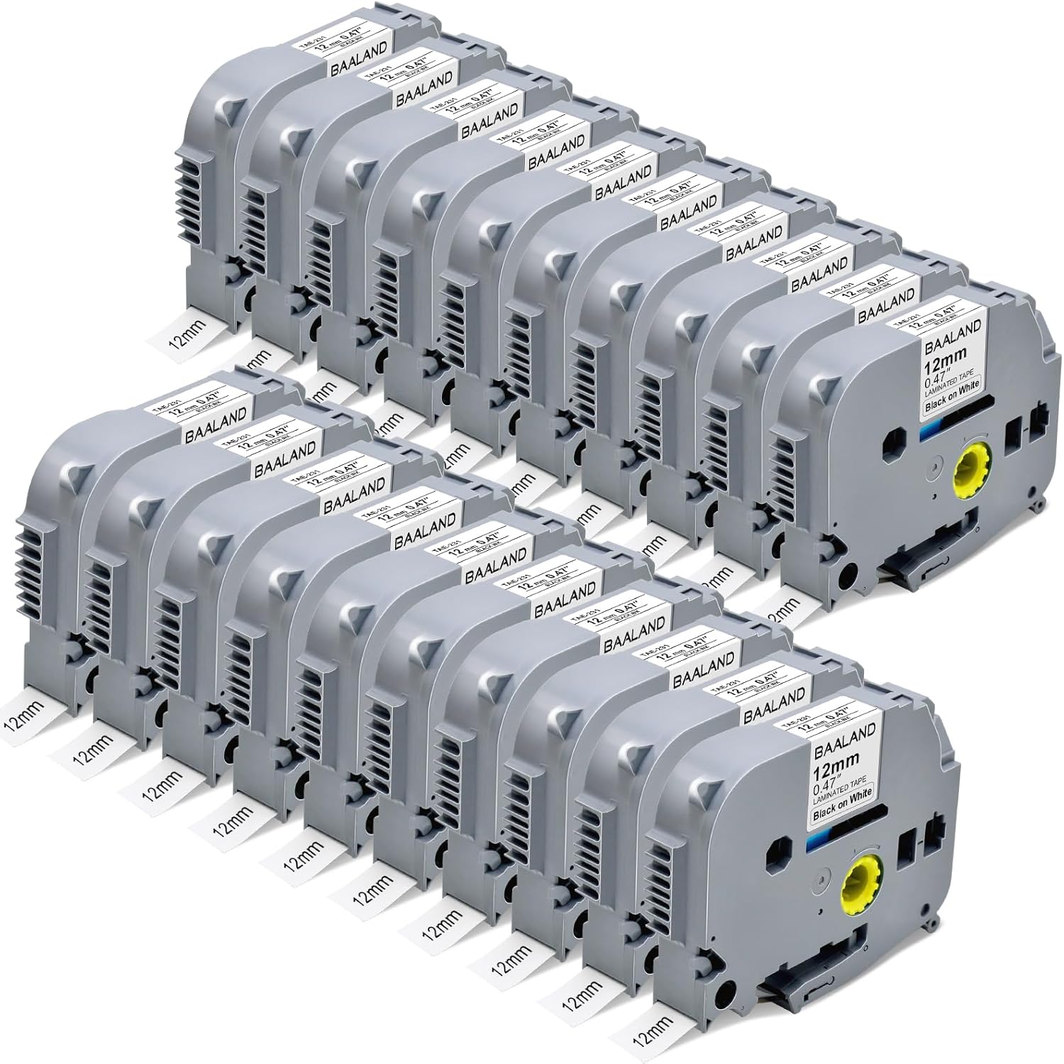 - Package Content: 20-Pack BAALAND TZe Tz Tape 12mm 0.47 Black Ink on White Tape, Width: 1/2 Inch (12mm), Color: Black Print on White Tape, Length: 26.2 Feet (8m). Model: Replace TZe231 TZ231 label maker tape