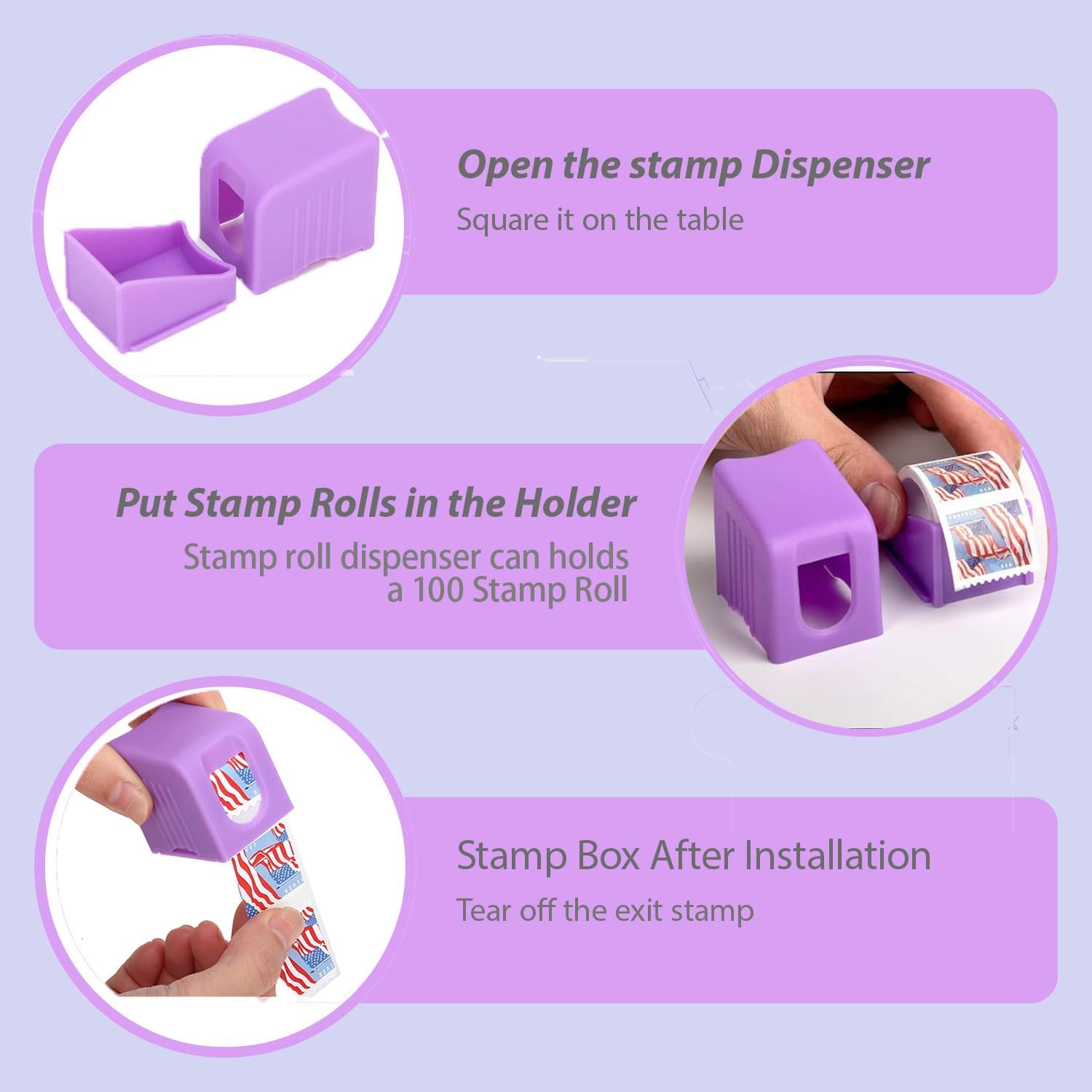 - 1. 【KEEP YOUR STAMPS NEAT】 – Our Stamp Roll Dispenser securely holds a full roll of 100 self-adhesive stamps, preventing messy tangles and accidental sticking. Perfect for desk organization, this Postage Stamp Dispenser ensures quick, one-at-a-time dispensing for hassle-free mailing.