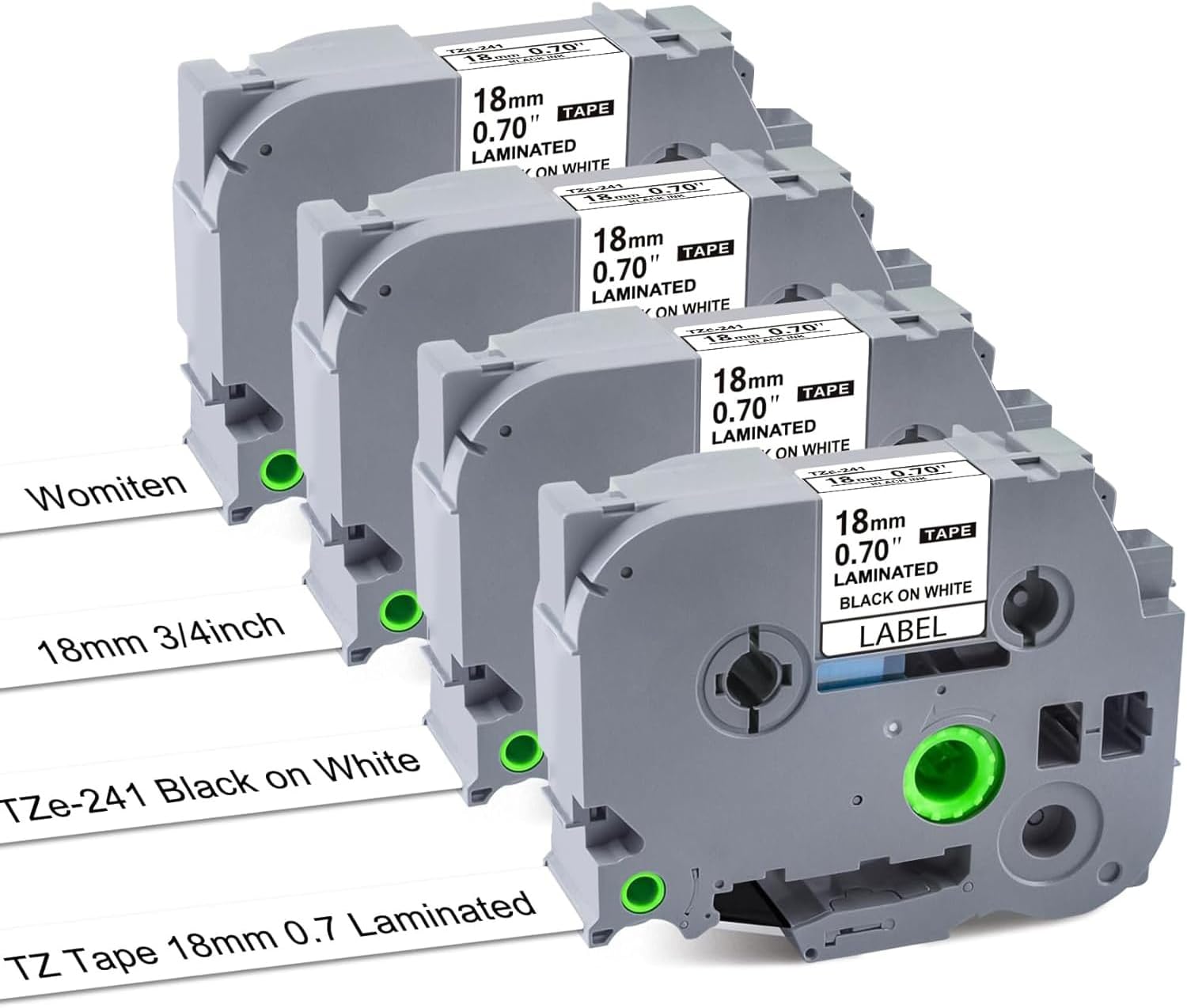 - What You Get: 4-Pack Compatible with Brother 18mm 0.7 laminated tape white TZe-241 p touch label. Size: 3/4 Inch(18mm 0.70 inch) x 26.2 Feet (8 m). Color: Black on White cassette