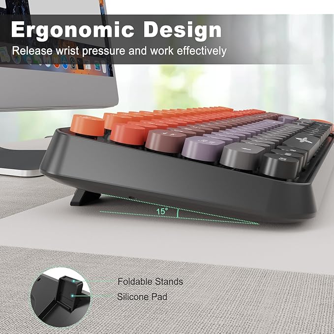 - A fusion of retro style and modern design: The inspiration of these cute rounded keys come from vintage typewriters offering you visual enjoyment and retro feeling to type. The mini Optical mouse is with modern ergonomic design,DPI adjustable(800-1200-1600).The combo will bring you a nostalgic feeling with the eye-catching retro aesthetic.