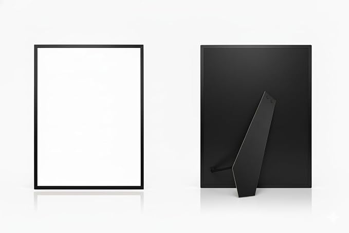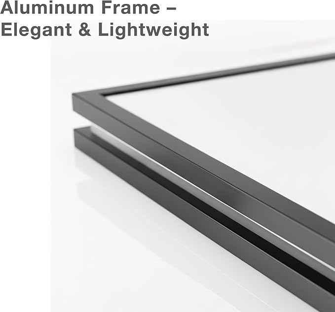 - Durable Frame with Foldable Stand: The black aluminum frame adds a modern, clean look to any space. Set it up on your desk using the foldable leg, or mount it on the wall vertically or horizontally with the included brackets and nails.